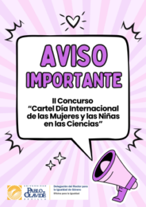 ¿Eres PDI, PTGAS o Estudiante de la Universidad Pablo de Olavide? Participa en el II concurso de carteles del 11F-Día Internacional de la Mujer y la Niña en la Ciencia.