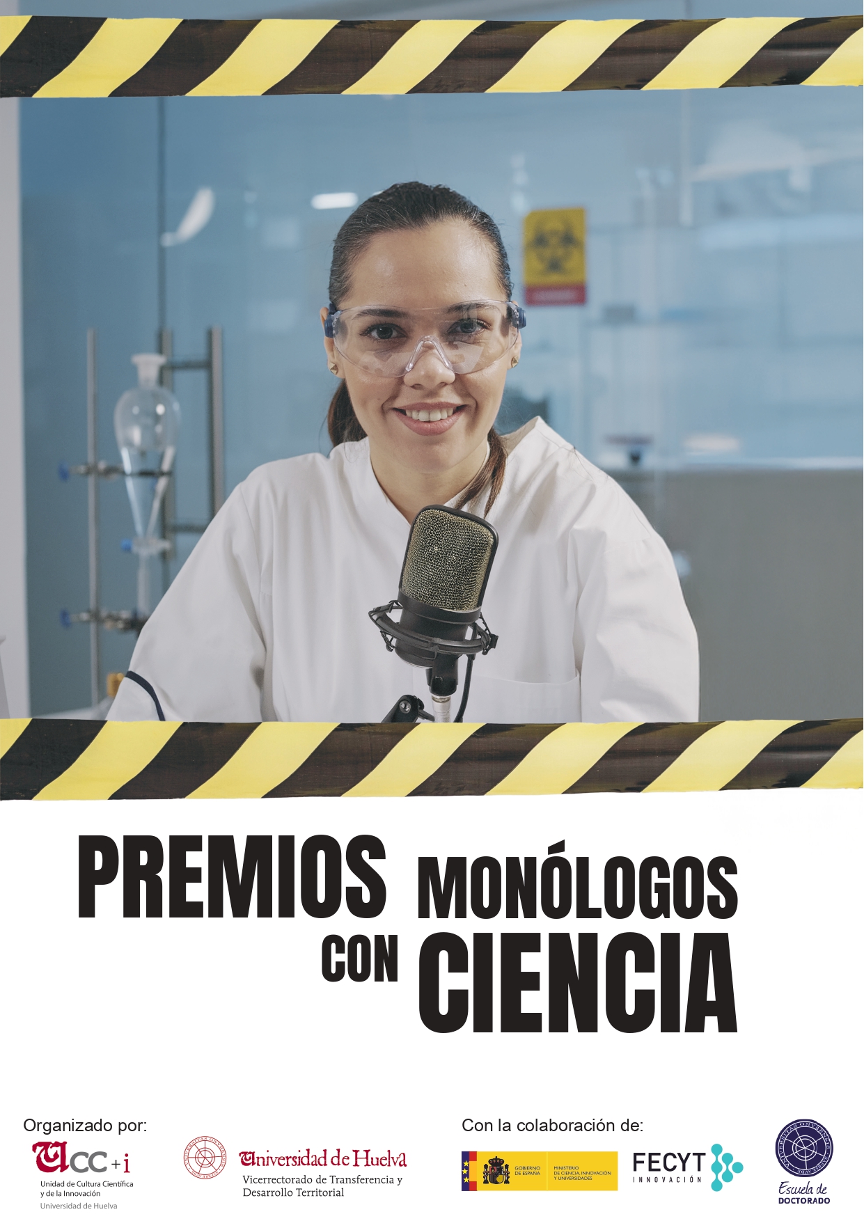 Este concurso cuenta con la colaboración de la Fundación Española para la Ciencia y la Tecnología (FECYT) y la Escuela de Doctorado de la Universidad de Huelva, y tiene por objeto apoyar la divulgación científica en medios audiovisuales y Redes Sociales, dando visibilidad a la ciencia, la tecnología, el emprendimiento y la innovación desarrollada en la UHU, especialmente aquella realizada por el estudiantado en el marco de sus TFG, TFM y Tesis doctorales, y haciéndola comprensible al mayor colectivo social posible.