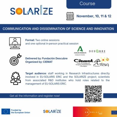 El Centro de Investigaciones Energéticas, Medioambientales y Tecnológicas junto a la Plataforma Solar de Almería organiza el curso de formación Communication and Disemination of Science and Innovation.