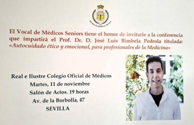 La Vocalía de Médicos Séniors del Real e Ilustre Colegio Oficial de Médicos de Sevilla organiza el próximo martes 11 de noviembre la conferencia titulada «Autocuidado ético y emocional para profesionales de la Medicina».