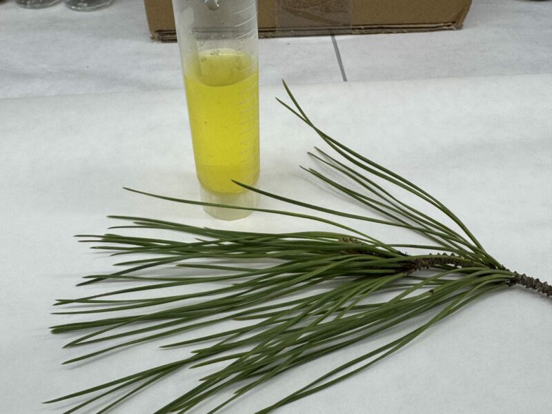 Para sintetizar las partículas de oro a partir de las acículas, los investigadores recogieron las hojas que habían caído de los pinos (pinochas), las lavaron, trituraron y sometieron a técnicas de ultrasonidos para romper las células y separar sus diferentes compuestos.
