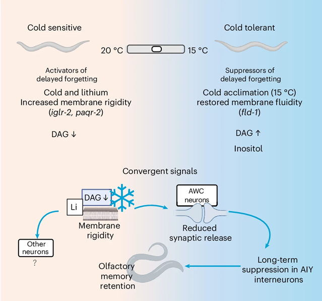 Además de la temperatura, los investigadores observaron que el litio, un fármaco utilizado desde hace décadas en el tratamiento de trastornos psiquiátricos, también es capaz de retrasar el olvido en este modelo experimental. El litio actúa sobre vías de señalización neuronal similares a las moduladas por el frío, afectando a la actividad de determinados circuitos implicados en la pérdida de memoria.