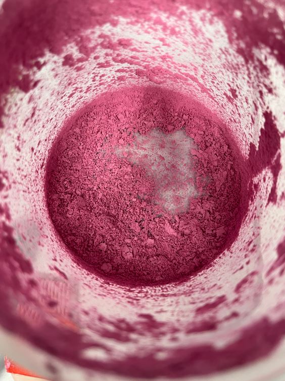 Colorante.jpg: Colorantes en polvo copigmentado y encapsulado obtenidos por Spray dryer.